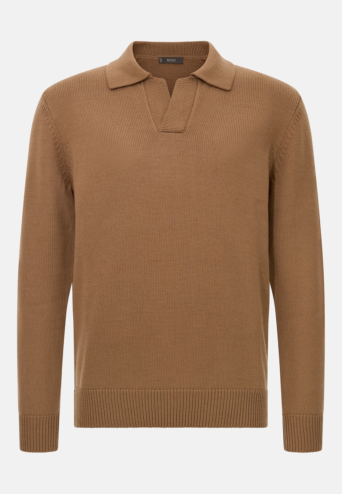 Open neck knitted polo shirt.